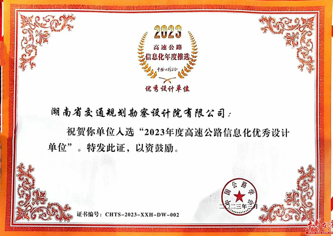 湖南日報·華聲在線4月21日訊(通訊員 薛新風)近日,第25屆中國高速公路信息化大會暨技術產(chǎn)品博覽會在福州舉辦。大會舉行了“2023高速公路信息化年度推選活動”揭曉典禮。這是當前我國交通信息化領域最高榮譽的獎項評選,湖南建投交通設計院獲“優(yōu)秀設計單位”表彰,是本次評選中湖南省唯一獲該類別榮譽的企業(yè)。