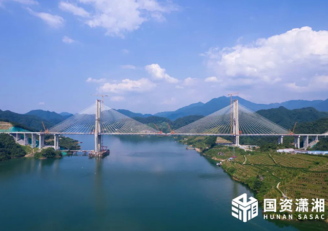 7月7日上午,隨著最后一塊橋面板精準吊裝到位,雪峰湖大橋成功實現(xiàn)合龍。這也標志著官新高速全線順利貫通,距離今年底通車的目標更進一步。雪峰湖大橋位于益陽市安化縣境內(nèi),橫跨柘溪水庫,全長1187米,主跨500米,兩個主塔均采用H形設計,其中陸上7號主塔高155 9米,水中6號主塔高202 4米,為雙塔雙索面半漂浮體系斜拉橋,是湖南省最大跨度鋼混組合梁斜拉橋。